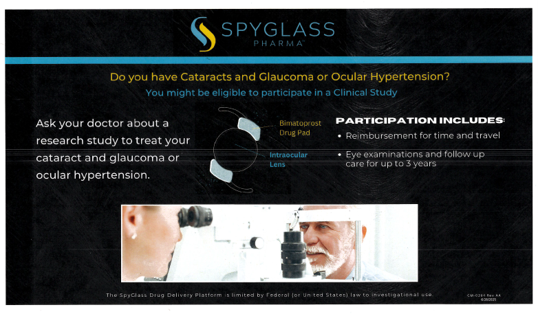 Spyglass Pharma study for Cataract, Glaucoma and Hypertension